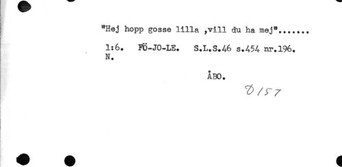 //// "Hej hopp gosse lilla ,vill du ha mej"....... //// 1:6. Ft)-JO-LE. S.L.S.A6 s.A54 nr. 196. //// N. //// ÅBO. //// * //// P ////