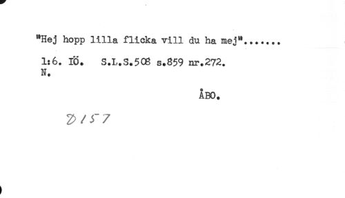 //// "Hej hopp lilla flicka vill du ha mej"....... //// 1:6. IÖ. S.L.S.5C8 s.859 nr.272. //// N. //// ÅBO. //// } ////