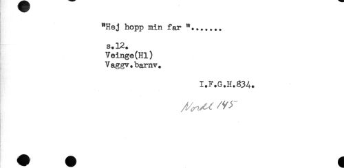 //// "Hej hopp min far //// s.12. //// Veinge(Hl) //// Vaggv.bamv. ////