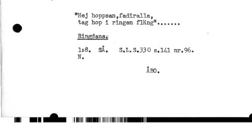 //// "Hej hoppsan,fadiralla, //// ^^ tag hop i ringen fläng"....... //// Ringdans* //// 1:8. SA. S.L.S.330 s.141 nr.96. //// N. //// ÅBO. //// HHII ^^^^ !<l! HHM II iniHIIHHIII^^HH^^^^^^^^H^^^^^^^^^^Hå ////