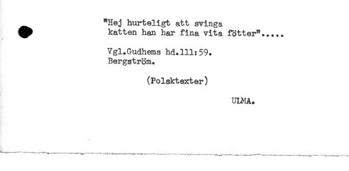 //// "Hej hurteligt att svinga //// ^^ katten han har fina vita fötter"..... //// Vgl.Gndhems hd.lll:59. //// Bergström. //// (Polsktexter) //// ULMA. //// ^ -------— ------ -- — rr--.^—----_______ ////