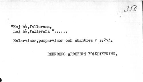 //// - //// ! //// : //// "Hej ha, faller ar a, //// hej hå,fallerara "...... //// ........ ^ //// Halarvisor,pumparvisor och shanties V s.274. //// REHNBERG ARBETETS FOIKDIKTNING. //// < //// ! //// ! //// i //// i //// i ////
