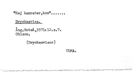 //// "Hej kamrater,kom"....... //// Dryckesvisa. //// Ang. Bot eå ,3 571:12. s. 7. //// Ohlson. //// (Dryckesvisor) //// ULMA. ////