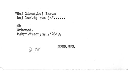 //// "Hej lirum,hej larum //// hej lustig som ja"...... //// Sk //// Örkened. //// Mskpt .Visor ,Ei.U. A26A9 . //// ^ NORD.MUS. //// \^ ..... ______^_____ ^^ ////