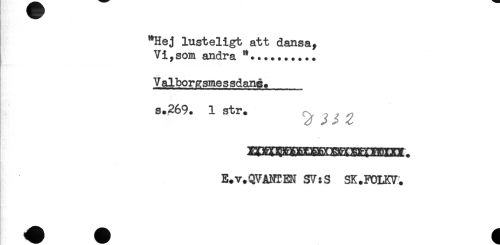 //// - //// "Hej lusteligt att dansa, //// Vi,som andra ".......... //// t**.?....,. . .. ...... //// Valborasme s sdang. //// a.269. istr. ^^ //// * //// E.v.QVAMTEN SV:S SK.FOLKV. ////