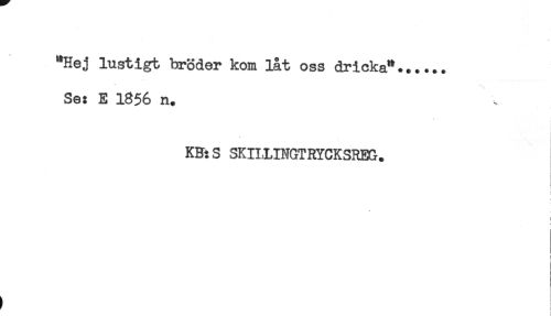 //// "Hej lustigt bröder kom låt oss dricka"...... //// Se: E 1856 n. //// KBtS SKILLINGTRYCKSREG. //// ] //// ! ////