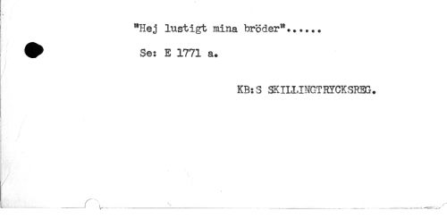 //// t //// "Hej lustigt mina bröder"...... //// ^ Se: E 1771 a,. //// KB:S SKIUJNGTRYCKSREG. //// ! //// ! //// ; ////