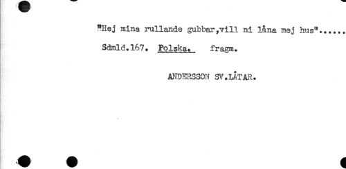 //// *Hej mina rullande gubbar,vill ni låna mej hus"...... //// Sdmld.167. Polska. fragm. //// ANDERSSON SV. LÅT AR. ////