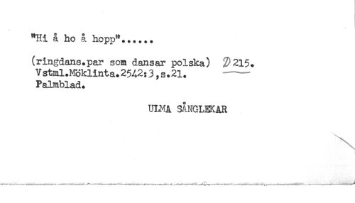 //// "Hi å ho å hopp"...... //// (ringdans.par som dansar polska) !P215. //// Vstml.Möklinta.25A2:3,s.21. —— //// Palmblad. //// ULMA SANGLEKAR //// \ ////