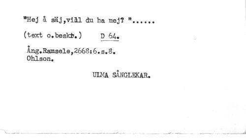 //// (text o.beskb. ) D 64. //// Ang. Ramsele, 2668:6. s. 8. //// Ohlson. //// ULMA SÅNGLEKAR. ////
