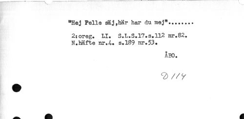 //// "Hej Pelle säj,här har du mej"........ //// 2:oreg. H. S.L.S.17.s.ll2 nr.82. //// N.häfte nr.A. s.189 nr.53. //// ÅBO. ////