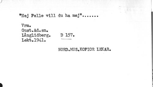 //// Vrm. //// Gust.Ad.sn. //// Långlidberg. D 157. //// Lekt.1941. - //// NORD.MUS.KOPIOR LEKAR. ////