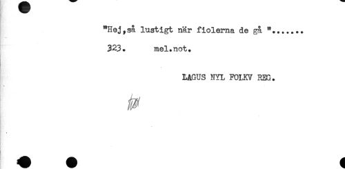 //// "Hej,så lustigt när fiolerna de gå "....... //// 323. mel.not. //// LAGUS NYL FOLKV REG. //// * ////