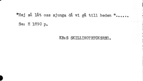 //// "Hej så låt oss sjunga då vi gå till heden "............; //// ! //// Se: E 1890 p. //// KB:S SKILLINGTRYCKSREG. ! //// ! //// i //// i //// ) //// ) //// i ////