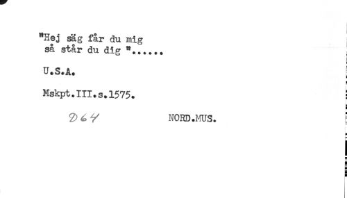 //// "Hej säg får du mig //// så står du dig "...... //// U.S.A. ^ //// ! //// Mskpt.III.s.1575. ; //// ! //// 2)^ / NOHD.MUS. E //// E //// < //// ! //// H //// s ////