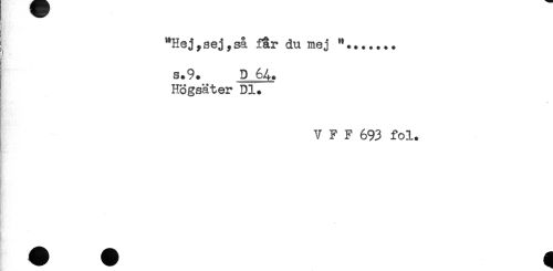 //// HA. //// { //// t //// ; "Hejysejyså i&r du mej //// ! //// s.9. D 64. //// Högsäter Dl. //// V F F 693 fol. ////