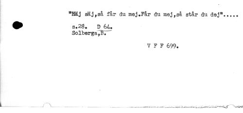 //// "Haj säj, så får du mej .Får du mej, så står du dej"... //// ^ s.28. D 64. //// SoTberga,B. //// V F F 699. //// * ////