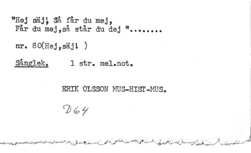 //// nr. 80(Hej,säjt ) //// Sånglek, 1 str. mel.not. //// : //// i //// i //// ERIK OLSSON MUS-HIST-MUS. ////