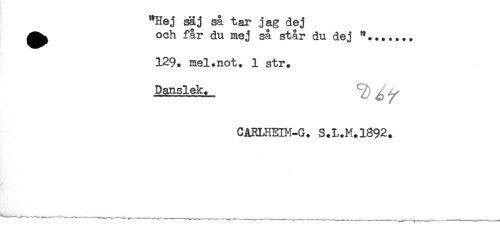 //// "Hej säj så tar jag dej //// ^^ och får du mej så står du dej "....... //// 129. mel.not. 1 str. //// Danslek. ^ ^ //// CARLHEIM-G. S.L.M.1892. ////