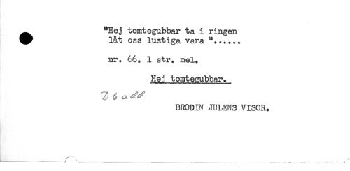 //// ^^ "Hej tomtegubbar ta i ringen //// ^^ låt oss lustiga vara //// nr. 66. 1 str. mel. //// Hej tomtemibbar. //// BRODIN JULENS VISOR. //// L___ / . //// .......... * * ---- ---- ---- ---.—t.,—...... —— ------J.—..A ////