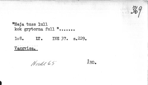 //// "Heja tuss lull //// kok grytorna full "....... //// 1:8. ET. INE 37. s.229. //// i //// Va^^visa. //// i //// t //// k //// - //// i //// t //// ^ //// t ////