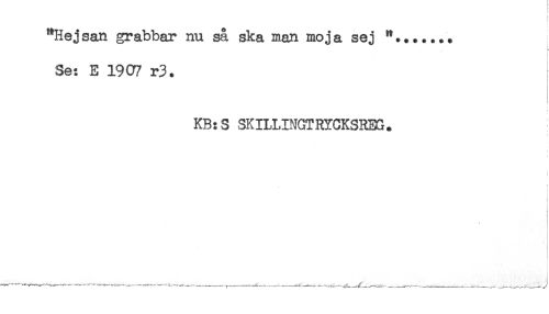 //// ! //// "Hejsan grabbar nu så ska man moja sej "*...... //// L //// 3e: E 1907 r3. //// KB:S SKILLINGTRYCKSREG. //// t //// ! //// ) //// < ////