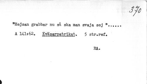 //// : //// "Hejsan grabbar nu så ska man svaja sej //// A 141:62. Kvasar patrikat. 5 str.ref. //// RA. //// i //// ! //// * ////