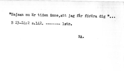 //// "Hejsan nu är tiden inne,att jag får förära dig "... //// B 23-24:2 3.142........Istr. //// RA. ////