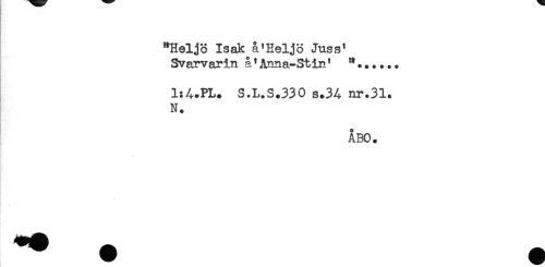 //// "HeljS Isak å'Eeljö Juss' //// Svarvarin å'Anna-Stin' "...... //// 1:4.PL. S.L.S.330 s.3A nr.31. //// N. //// ÅBO. ////