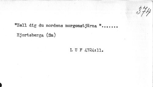 //// "Hell dig du nordens morgonstjärna "...+... //// Hjortsberga (Sm) i //// i //// c //// } //// I //// L U F 4724:11. ////