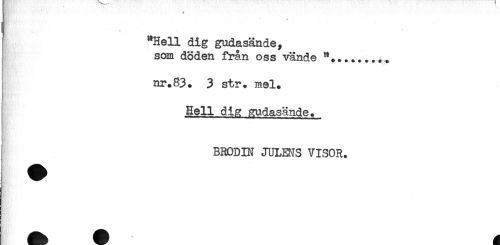 //// . v //// jj^ " ^ * //// "Hell dig gudasände, //// som döden från oss vände //// nr.83. 3 str. mel. //// M //// BRODIN JULENS VISOR. ////
