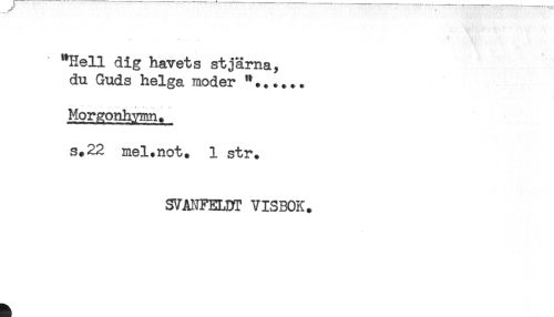 //// "Hel! dig havets stjärna, //// du Guds helga moder //// Morgonhymn. //// s.22 mel.not. 1 str. //// SVANFELDT VISBOK. ////