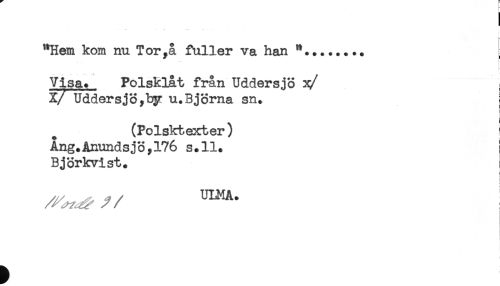 //// ! //// L //// "Hem kom nu Tor,å fuller va han *........ //// Visa. Polsklåt från Uddersjo x/ //// X/ Uddersjö,hy u.Björna sn+ [ //// (Polsktexter) ! //// Ång.Anundsjo,176 s.U. //// Björkvist. //// ! //// r //// : //// i ////
