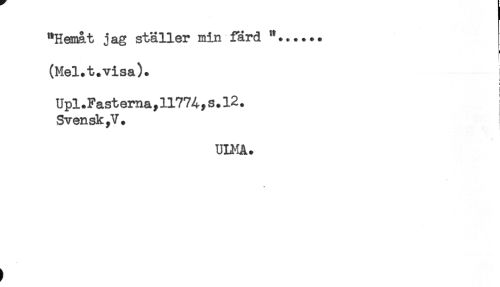 //// "Hemåt jag ställer min färd "...... //// * //// (Mel.t.visa). //// i //// Upl.Fasterna,11774,s.12. //// Svensk,V. //// ULMA. ////