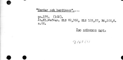 //// "Herdar och herdinnor".... //// no.175. (102). //// Ab.Nl.Wefvar. SLS 82,392, SLS 125,57, R6,200,8. //// s.22. //// ÅBO SJÖBERGS SA! IL: //// * ////