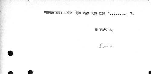//// "HERDINNA SKÖN H^R VAD JAG DIG "......... 7. //// h ' //// N! 1787 b. //// J //// F.. ////