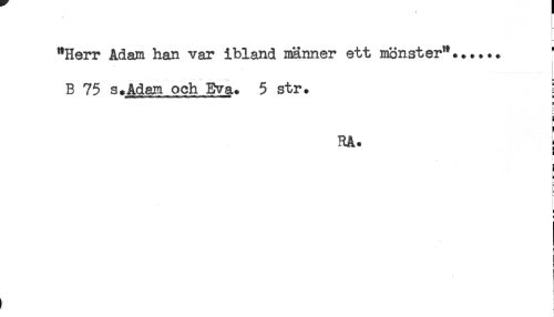 //// "Herr Adam han var ibland männer ett mönster"...... //// B 75 s.Adam och Eva. 5 str. //// r* //// ! //// RA. : //// i //// B //// ! //// ) //// t //// c //// t //// ! //// f ! ////