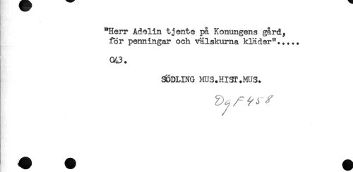 //// "Herr Adelin tjente på Konungens gård, //// för penningar och välskurna kläder"..... //// 043. //// SÖDLING MUS.HIST.MUS. ////