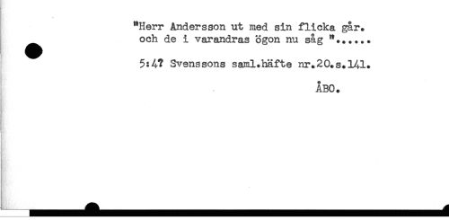 //// "Herr Andersson ut med sin flicka gar. //// och de i varandras ögon nu såg //// 5:4? Svenssons saml.häfte nr.20.s.l41. //// ÅBO. ////