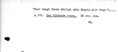 //// "Herr Bengt förde kärligt skön Sigrid allt fram "... //// A 328. Den blödande rosen. 26 str. kom. //// RA. //// <. ////