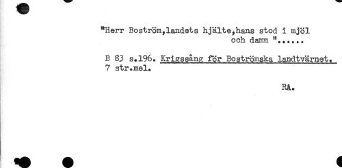//// "Herr Boström,landets hjälte,hans stod i mjöl //// och damm //// B 83 s+196. Krigssång för Boströmska landtvämet. //// 7 str.mel. //// RA. //// - //// - //// ** * # ////