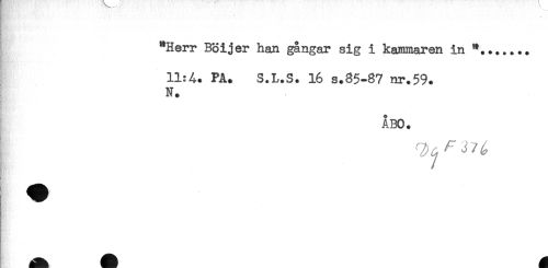 //// "Herr BSijer han gångar sig i kammaren in "....... //// 11:4. PA. S.L.S. 16 s.85-87 nr.59. //// N. //// ' //// ÅBO. //// A. ^ ^ ////