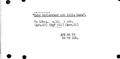 //// ********** //// "Herr Gullebrand och lilla Lena". //// - //// . //// . //// Vs 126:4. s.12. 1 str. //// (Afz.62) (DgF 3TJ.) (Arv.3l) //// AFZ MS KB //// KB VS 126. ////