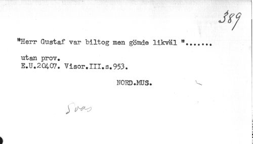 //// JW //// "Herr Gustaf var biltog men gömde likväl "....... //// utan prov. //// E.U.20407. Visor.III.s.953. //// NORD.MUS. ^ //// ! ////