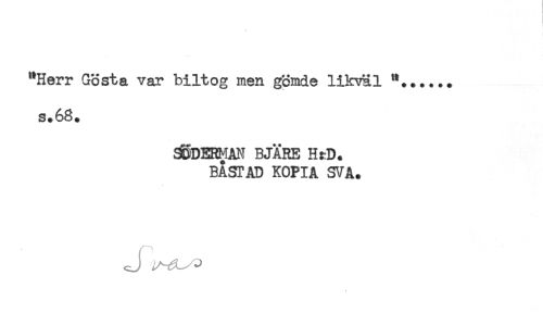 //// / //// "Herr Gösta var biltog men gömde likväl "...... //// s.68. //// SÖDERMAN BJÄRE HrD. //// BASTAD KOPIA SVA. ////
