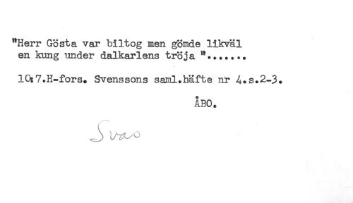 //// "Herr Gösta var biltog men gömde likväl //// en kung under dalkarlens tröja "....... //// 10:7.H-fors. Svenssons saml.häfte nr 4.S.2-3+ //// ÅBO. ////
