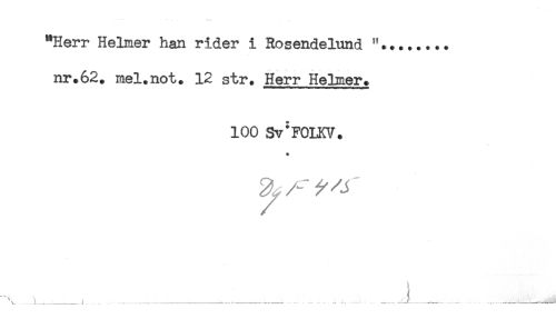 //// "Herr Helmer han rider i Rosendelund "*....... //// nr.62. mel.not. 12 str. Herr Helmer. //// 100 Sv^FOIKV. //// , ____ ^ ^ ////