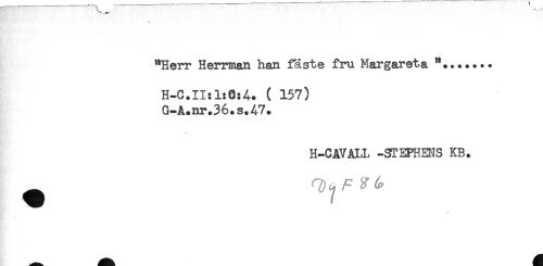 //// w //// "Herr Herrman han fäste fru Margareta "....... //// H-C.II:1:0:A. ( 157) //// G-A.nr.36.s.A7. //// H-CAVALL -STEPHENS KB. ////
