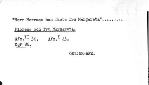 //// "Herr Herrman han fäste fru Margareta"......... ] //// Florens och fru Margareta. j //// Afz.II 36. Afz.I 43. //// DgF 86. //// GEIJER-AFZ. ////