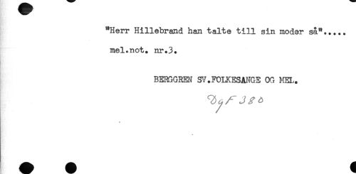 //// "Herr Hillebrand han talte till sin moder så"..... //// mel.not. nr.3. //// BERGGREN SV.FOLKESANGE OG MEL. //// . //// * ////